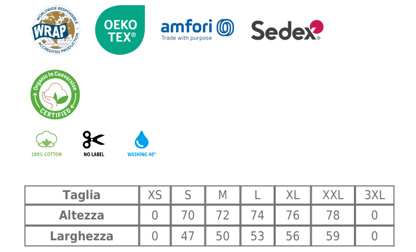 La stampa è effettuata artigianalmente, questo potrebbe causare delle piccole imperfezioni sui capi.